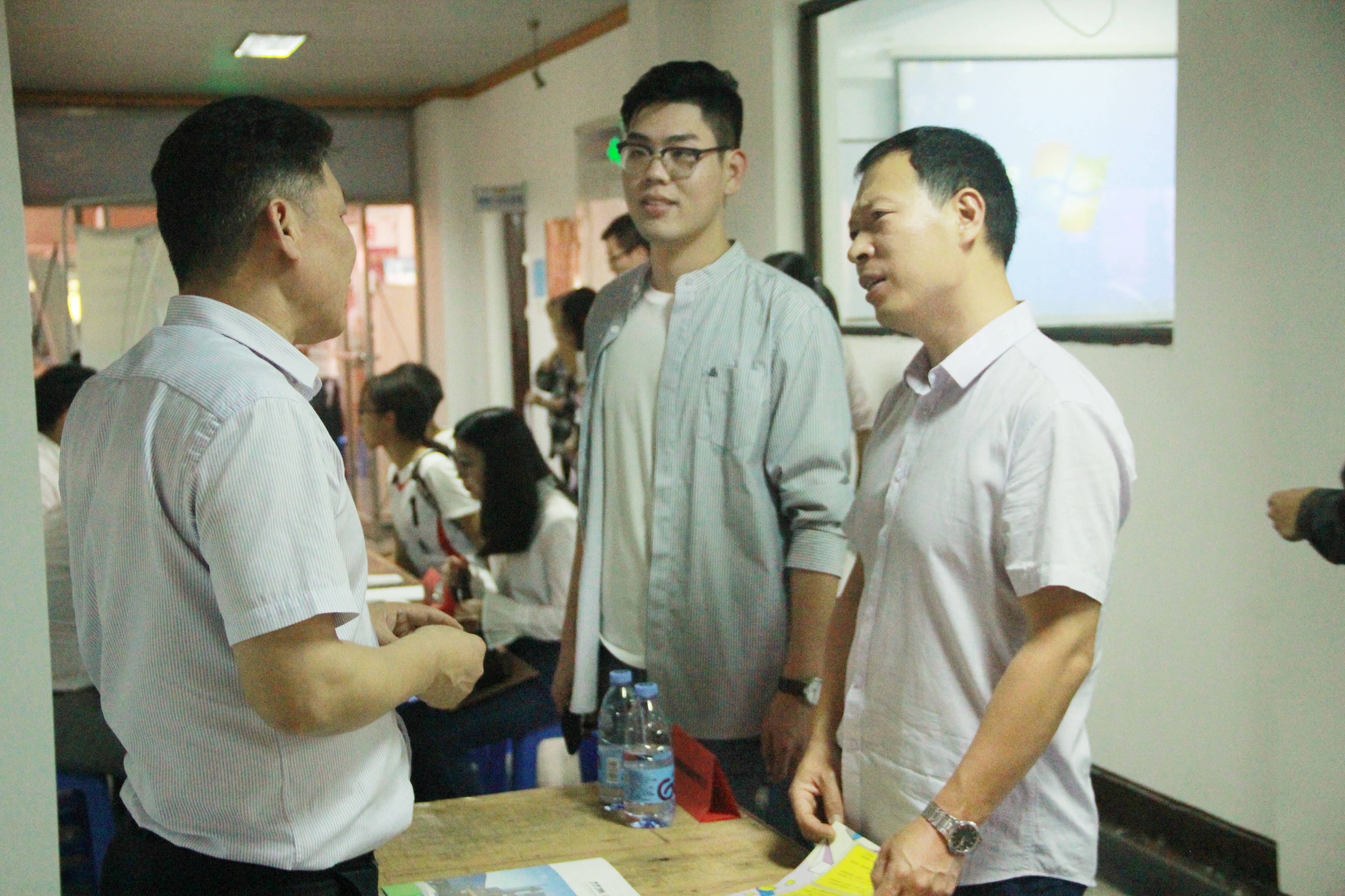 yl7703永利官网总支书记曾凤生(右一)招聘会现场交流与指导