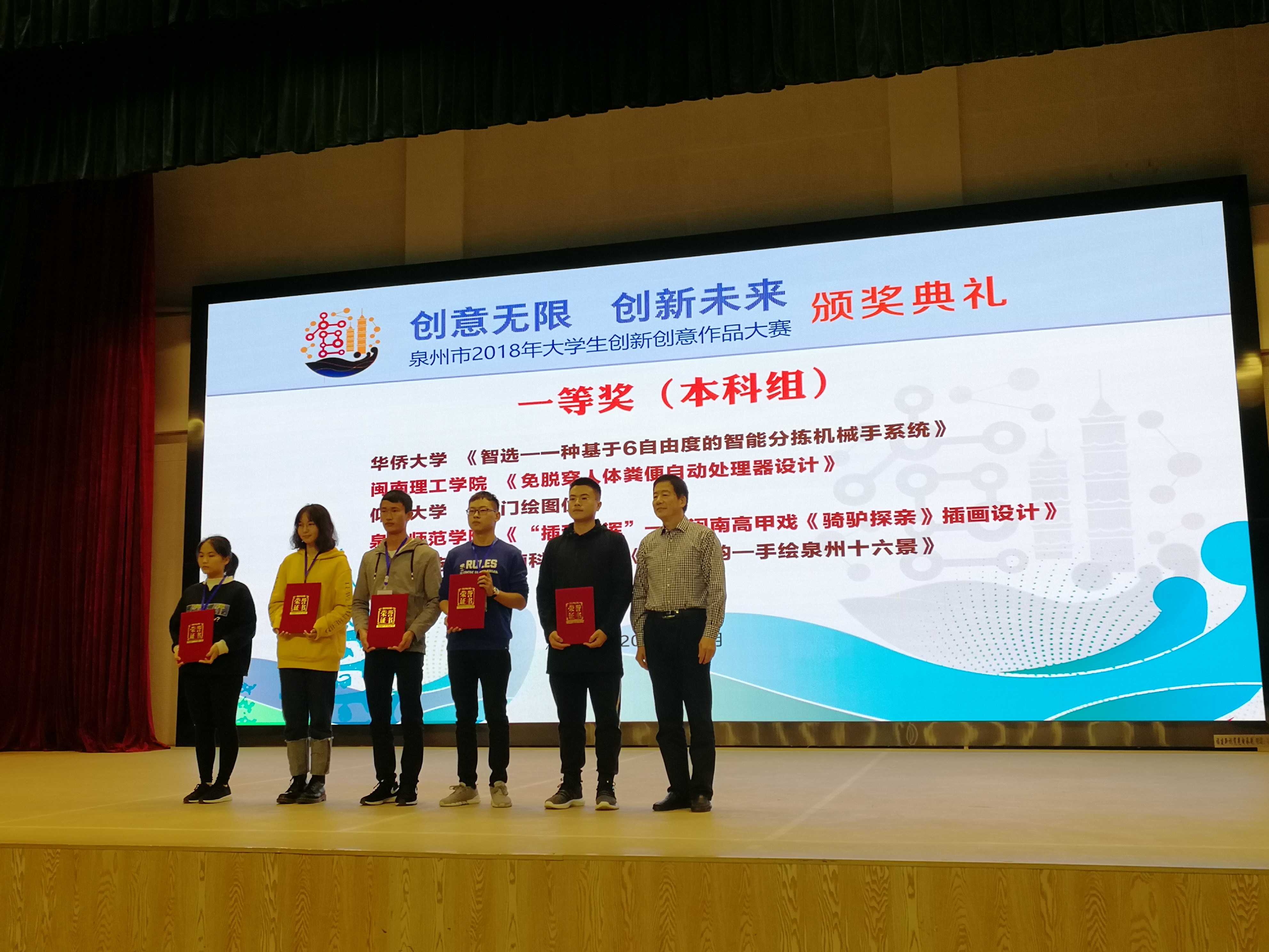 11月23日,泉州市2018年大员工创新创意作品大赛决赛在黎明职业大学举行。yl7703永利官网报送的作品《龙门绘图仪》荣获A组技术革新类一等奖,《奇幻之旅》荣获A组创意设计类二等奖。