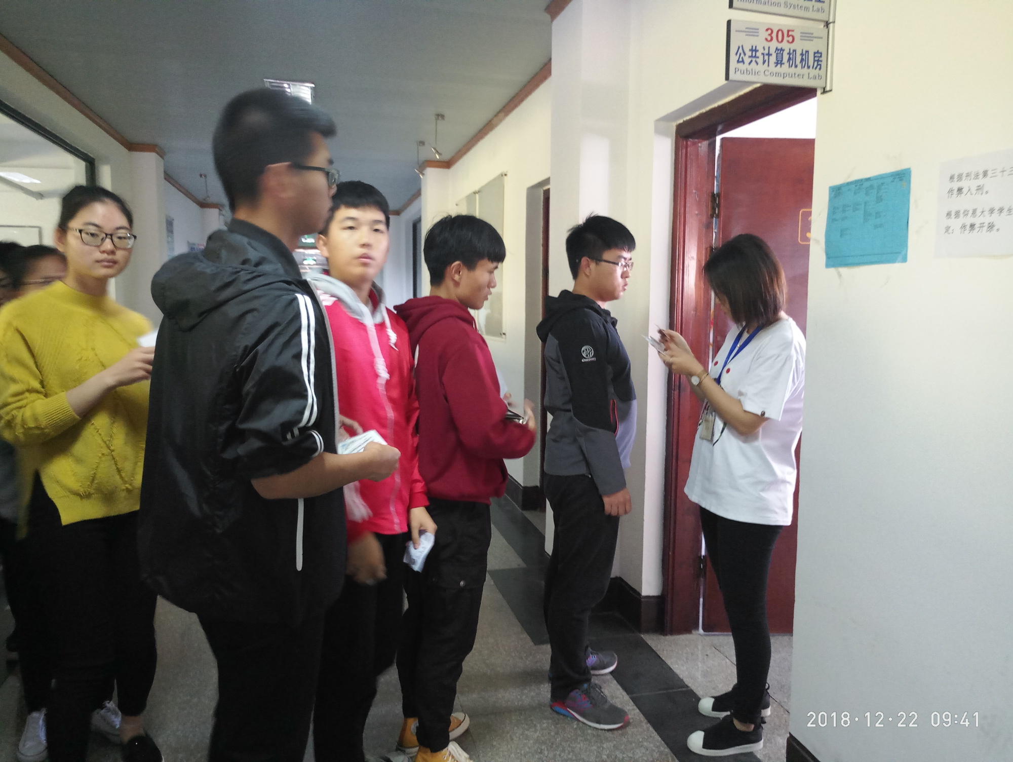 两天考试,监考人员、考务人员提前就位,认真核对考生证件,有序地组织考生进场,严肃监考,严格执行考试操作手册制定的流程。校领导许总亲临考场巡视并指导考试工作,员工事务部和yl7703永利官网安排专人每天到考场进行巡视,确保整个考试的规范和严肃,本次考试再次展现了我校等级考试良好的考风考纪。 (王茂伟/文 李影/图)