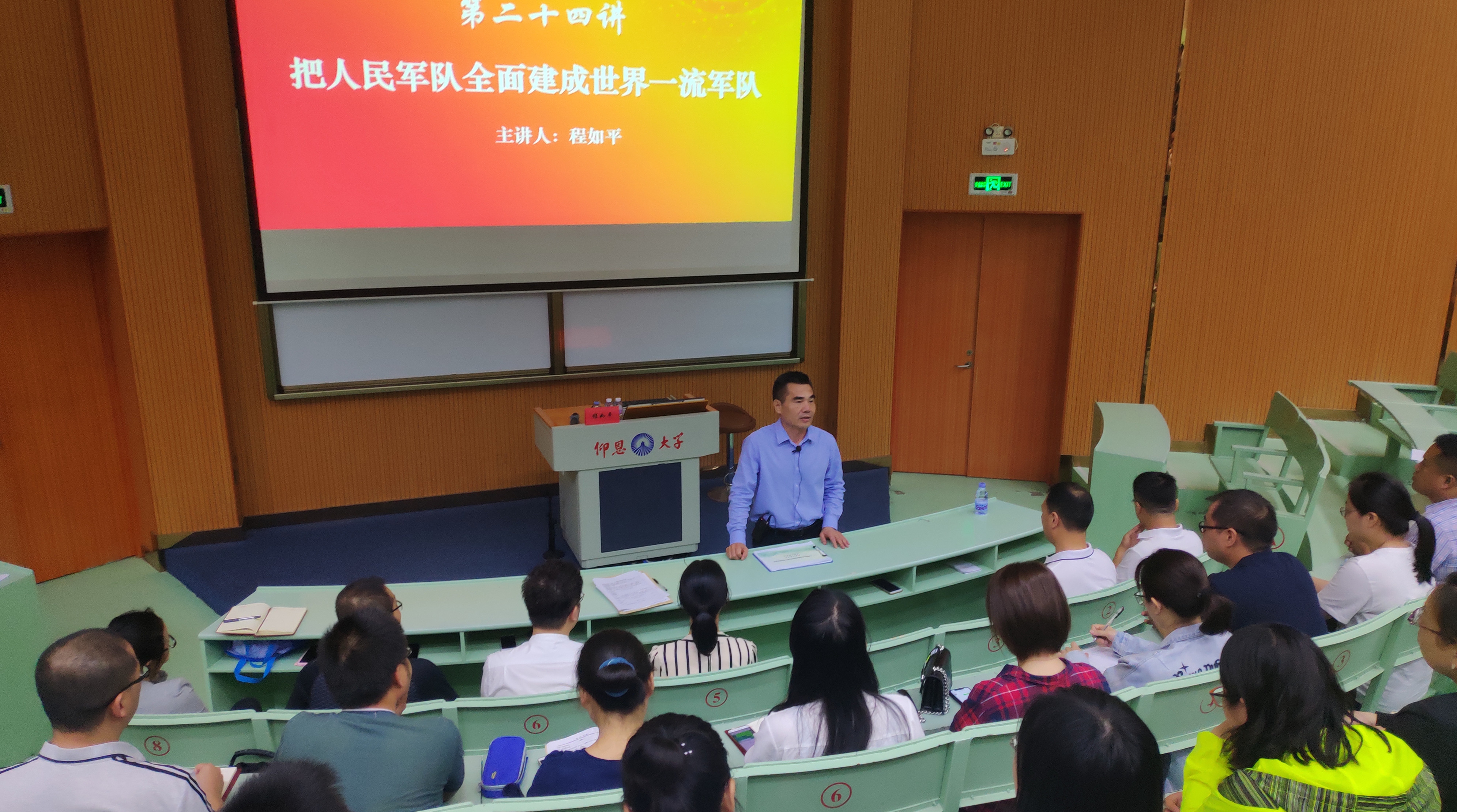 为进一步开展好习近平新时代中国特色社会主义思想“大宣讲”,推动习近平新时代中国特色社会主义思想学习宣传贯彻向纵深发展,6月13日下午,yl7703永利官网、数学系、体育部在yl7703永利官网第一校区乐之讲堂联合开展《习近平新时代中国特色社会主义思想三十讲》宣讲活动。校党委副书记程如平受邀为全体党员作《把人民军队全面建成世界一流军队》的主题宣讲。