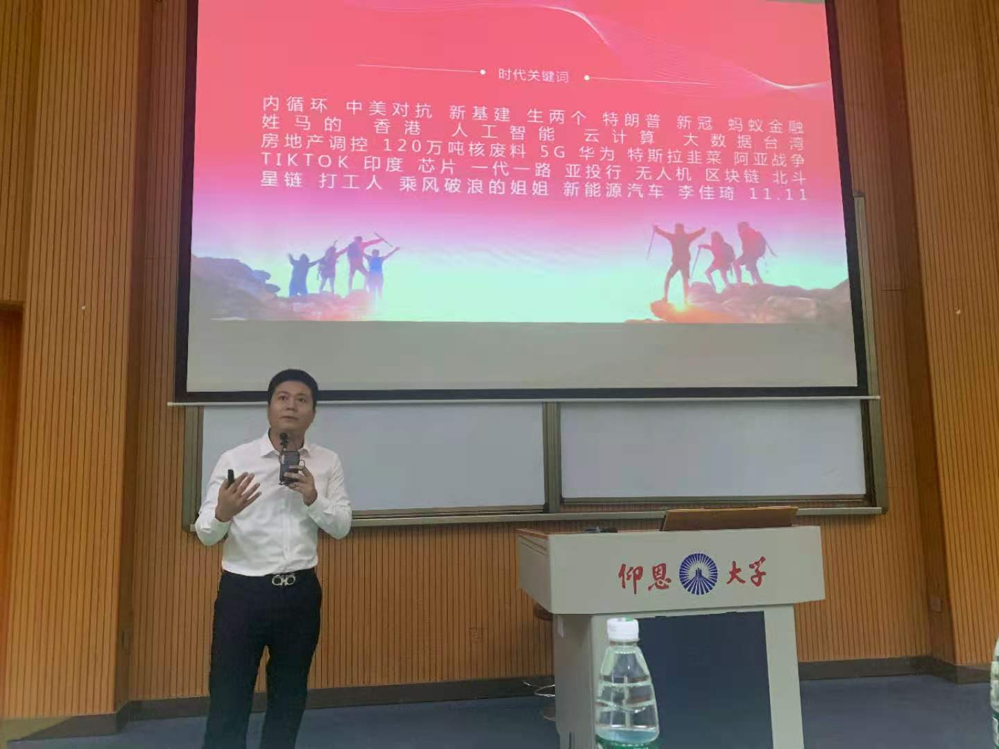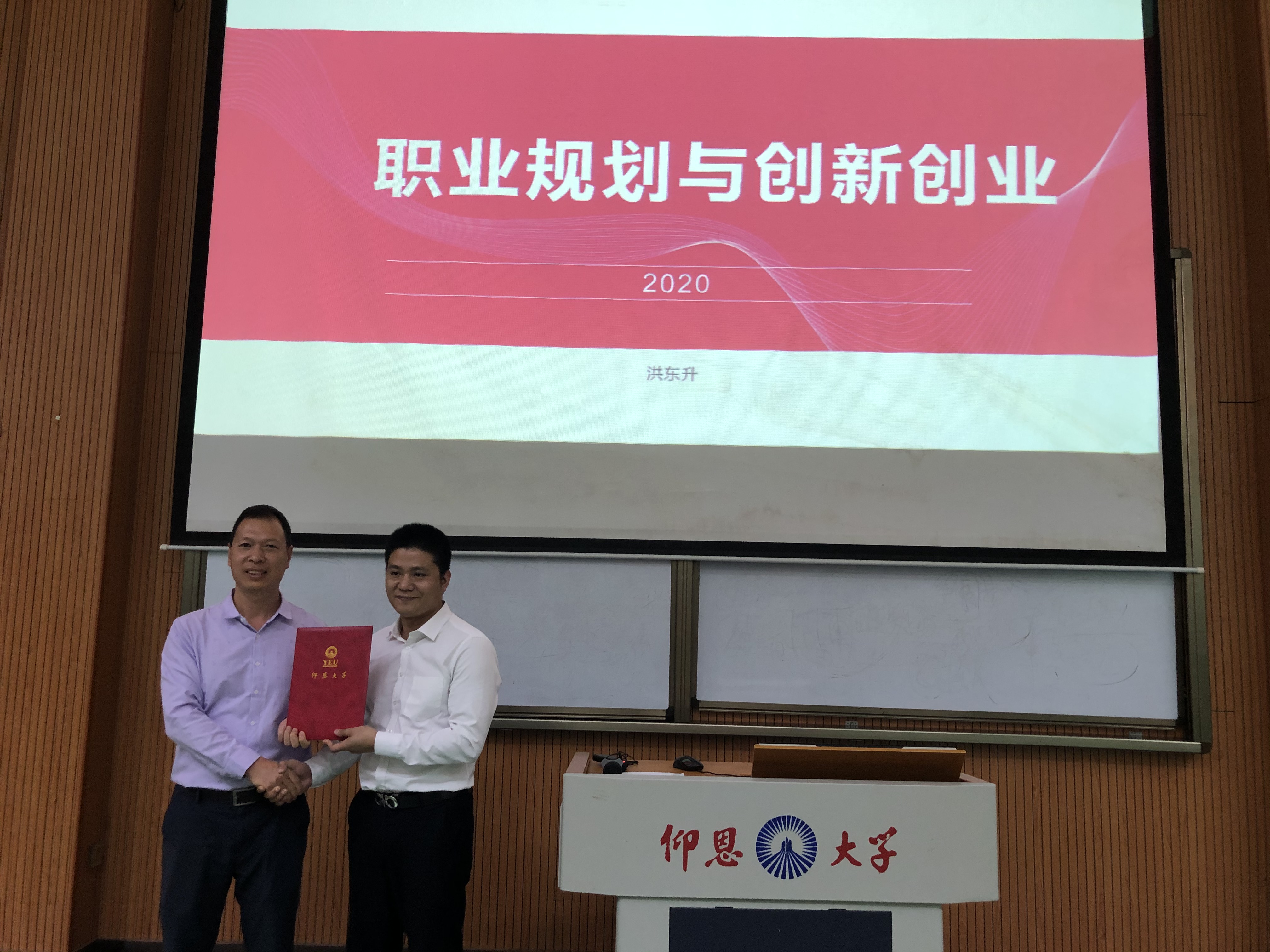 聘任仪式后,洪东升为现场的300多名师生做了题为“职业生涯与创新创业”的讲座。洪东升结合自己的职业经历,深入分析了在大数据背景下职业的变化趋势,介绍了现在大型企业对人才的需求和培养模式、企业育人机制,期望给同学们的人生职业规划以指导,希望在校大员工关注新职业,紧跟时代变化;还向同学们讲述了创业者需要具备的素质,结合自身创业经历为同学们创业提出建议,做好自我认知管理和提升自我,打造个人职业品牌。让现场师生受益匪浅。