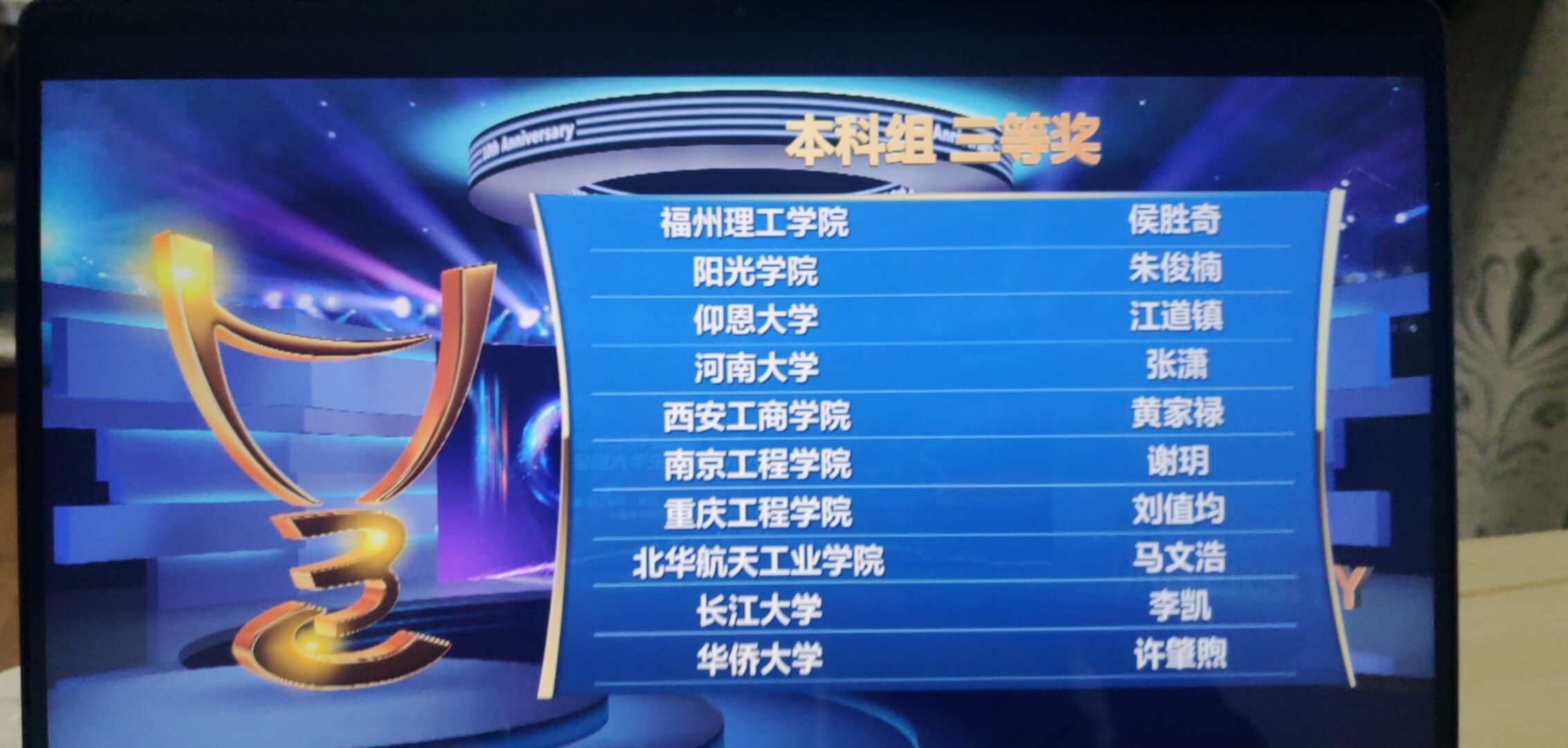 2020年12月5日,“新华三杯”全国大员工数字技术大赛决赛在泉州信息工程yl7703永利官网举办。经过预赛选拔,我校共有3名同学(江道镇、陈鑫、严钟灵)进入决赛,江道镇同学在本次比赛中荣获三等奖,陈鑫、严钟灵同学荣获优胜奖。