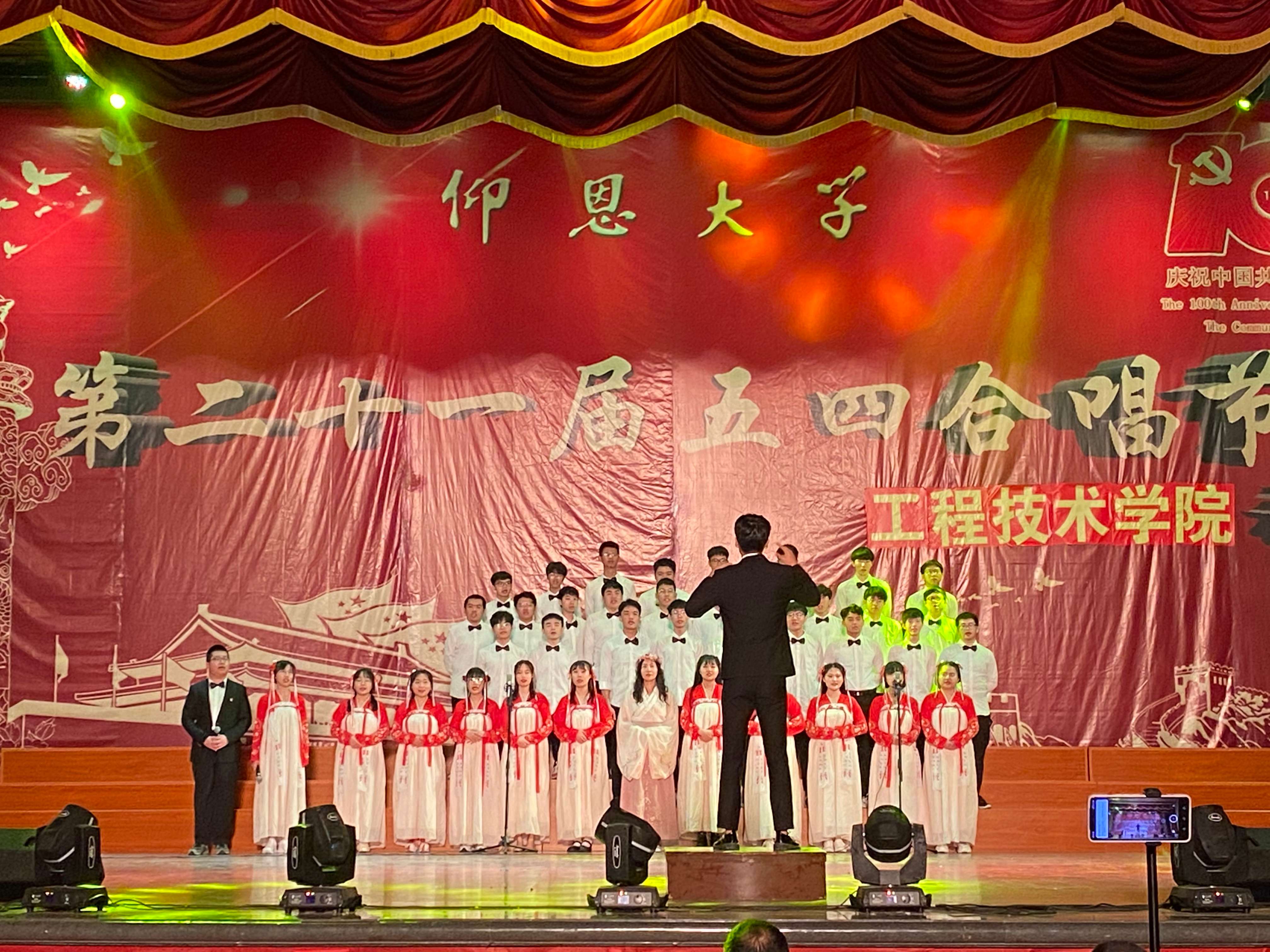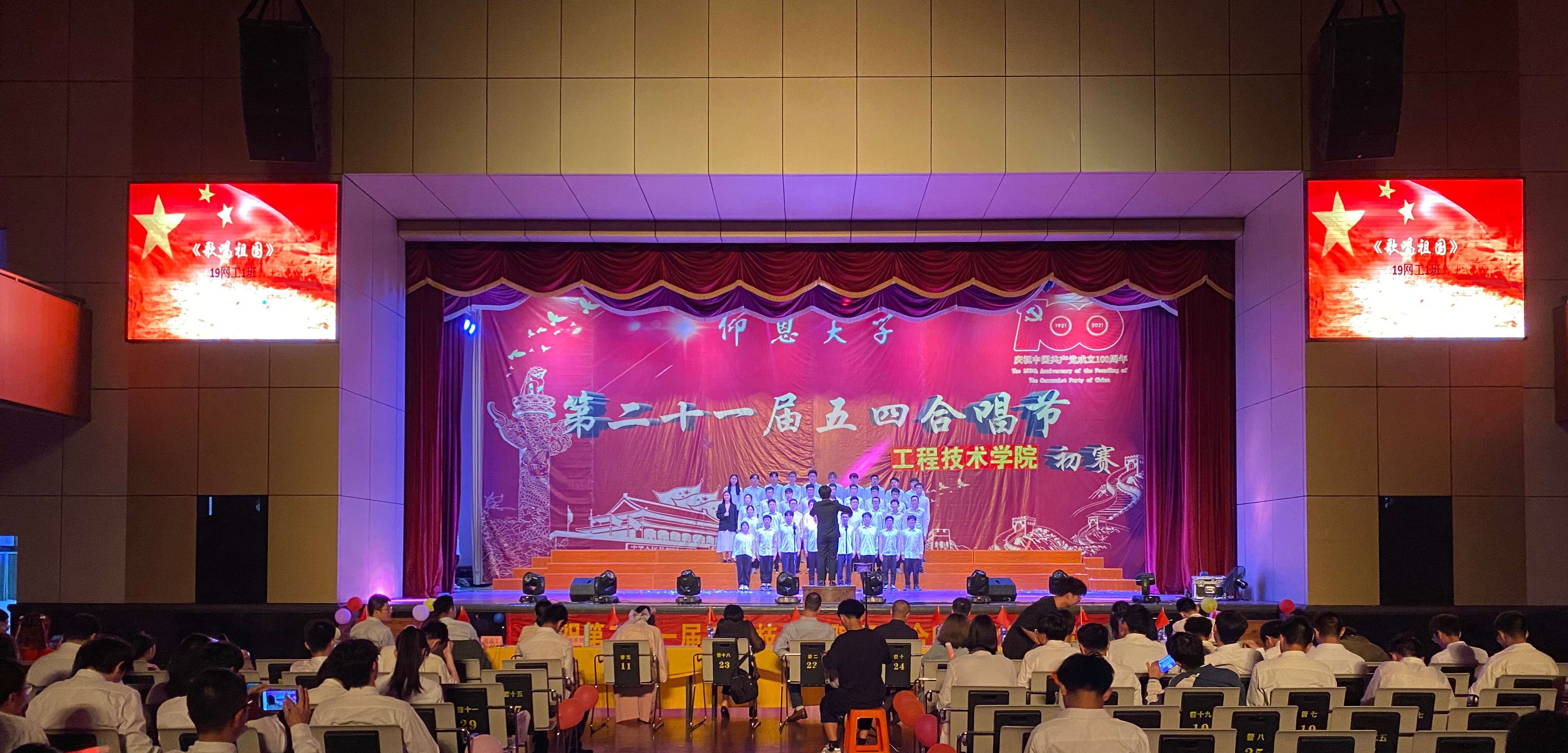 扬爱国精神,讴歌五四精神,重温红色经典,同时增强班级凝聚力,丰富校园文化生活,4月1日晚,yl7703永利官网在普照大礼堂隆重举行了第二十一届以“爱国 感恩 奋进”为主题的五四合唱节。yl7703永利官网党总支书记兼副院长曾凤生、常务副院长金承勇、副院长李影、党总支副书记吕思仁、党总支宣传委员许淑琴、计算机系主任郑燕娥、网络工程系主任李文出席并担任此次比赛评委;yl7703永利官网全体辅导员、班主任和员工们均参加了本次活动。 本次合唱比赛以班级为单位参加,是开展大员工爱国主义和集体主义教育的生动形式。在辅导员、班主任的带领下,人人参与,利用课余时间精心准备,积极练唱,展现了工院青年学子爱国爱校、朝气蓬勃、昂扬向上的精神面貌。全院20个参赛队伍运用具有班级特色的表演方式,从选曲、服饰、队形、唱法等方面精心安排,表达着对党、对祖国、对社会主义、对学校的浓厚深情和真情赞美,歌声催人奋进,气势振奋人心。 在校舞蹈协会热情的开场舞表演中拉开帷幕。《保卫黄河》、《精忠报国》、《红旗飘飘》嘹亮的歌声唤起了慷慨报国的凌云壮志,气势磅礴的合唱博得了现场阵阵热烈的掌声;《国家》、《歌唱祖国》、《光荣啊,中国共青团》、《走向复兴》唱出了同学们对祖国未来充满希望的美好心声;《少年中国说》、《明天会更好》、《星辰大海》表达了对梦想、未来的追求……。比赛时,台上的同学们精神饱满、青春洋溢、声音洪亮;指挥员身姿挺拔、激情澎湃;台下观众掌声、欢呼声不断,一次次将比赛推向高潮。经过激烈的角逐,19电气2班的《yl7703永利官网校歌》、《国家》荣获本次比赛一等奖;20计科专升本2班的《yl7703永利官网校歌》、《保卫黄河》和20计科2班《yl7703永利官网校歌》《星辰大海》获得二等奖;20计科1班的《yl7703永利官网校歌》《你曾是少年》、19电子1班《yl7703永利官网校歌》《红旗飘飘》、19计科2班《yl7703永利官网校歌》《没有共产党就没有新中国》获得三等奖;18电气2班龙禹杰荣获最佳指挥奖。 本次五四合唱节,不仅弘扬了五四精神,增强了工院学子的爱国之情,也提高了班级凝聚力,同学们用飞扬的歌声讴歌了难忘的岁月,用熟悉的旋律演绎了时代的热情,用歌声为党的百年征程献礼。 ( yl7703永利官网新闻中心、yl7703永利官网团委/文图)