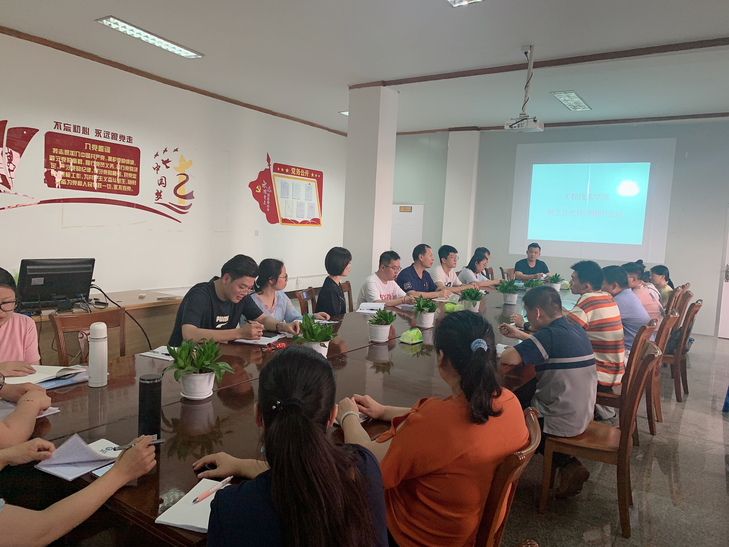 5月17日下午yl7703永利官网在泽钏楼4楼会议室召开了班主任期中工作会议,yl7703永利官网党总支书记曾凤生、副书记吕思仁、全体辅导员以及各班班主任参加了此次会议。