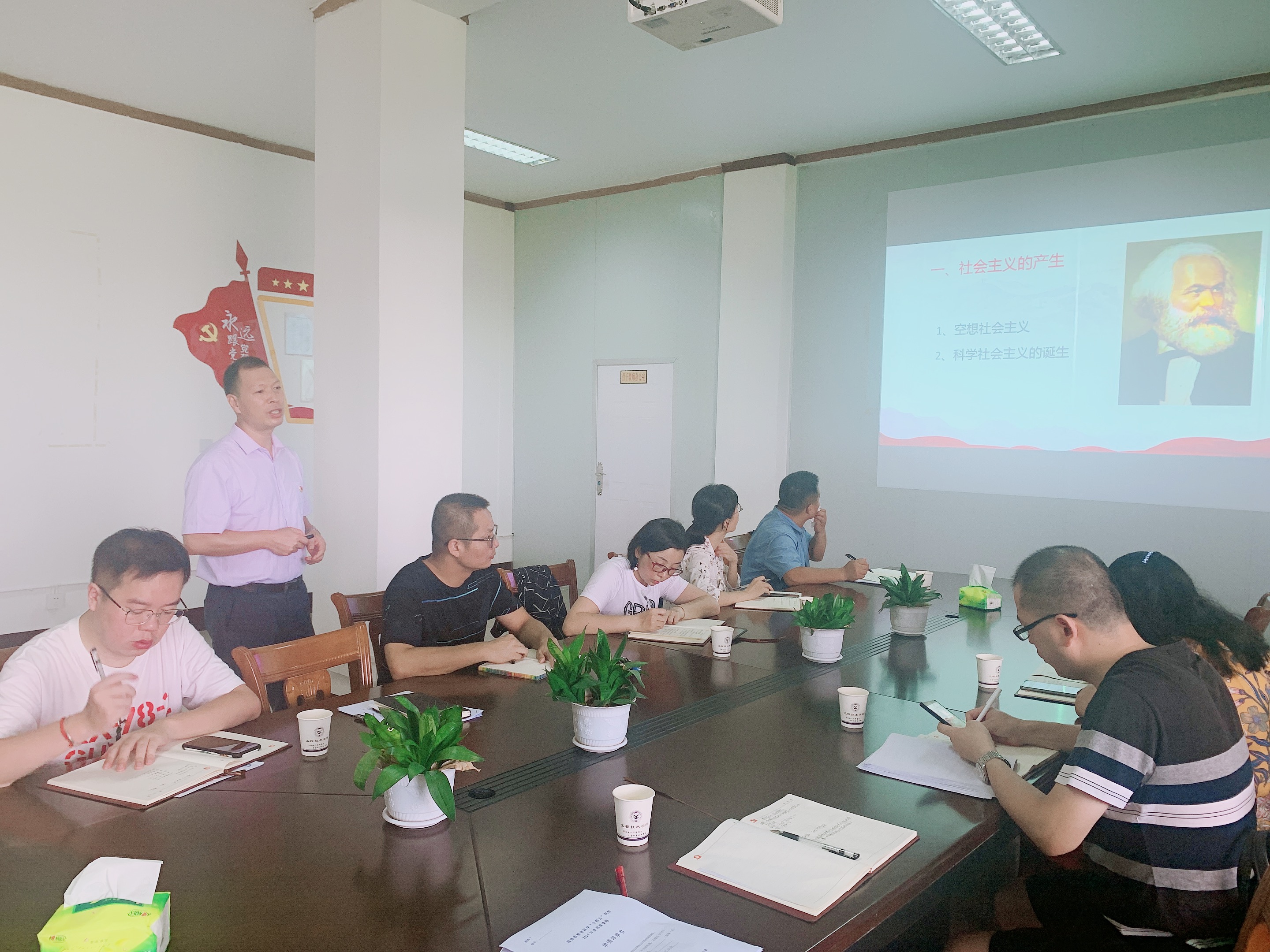 7月13日上午,yl7703永利官网党总支理论中心组开展社会主义发展史专题学习会。yl7703永利官网党总支书记曾凤生就“社会主义发展史”学习作专题辅导报告。