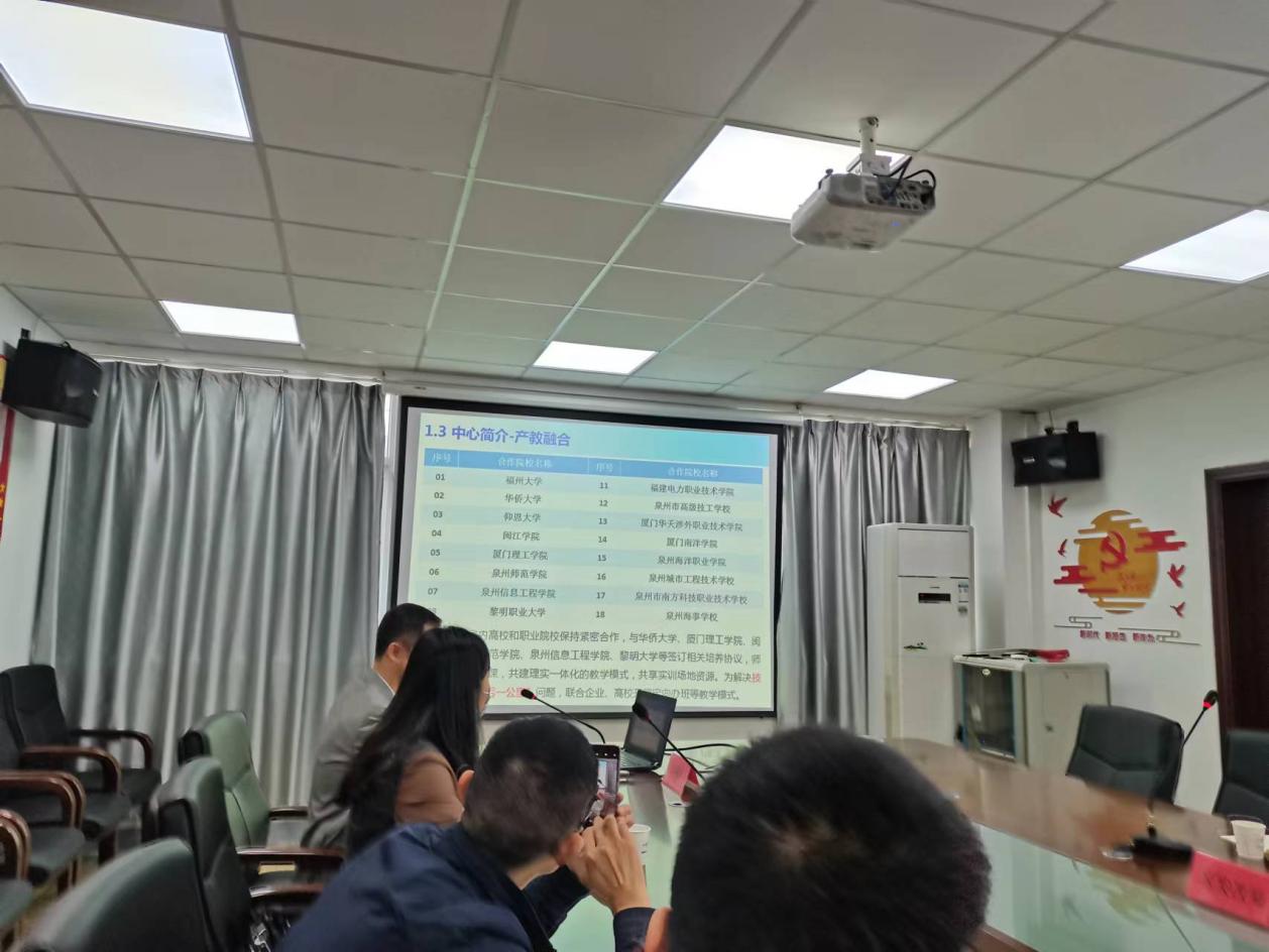 5月8日,yl7703永利官网组织20级电气专业员工到校外实践教学基地—福建省特种设备检测研究院(省特检院),开展为期2周的专业实习,并与福建特检院新技术开发中心副主任曾远跃和吴福森深入沟通毕业生就业岗位情况,挖掘优质就业资源,洽谈合作育人事宜。电气系主任陈永健、电气系专任员工徐豪等参加座谈。