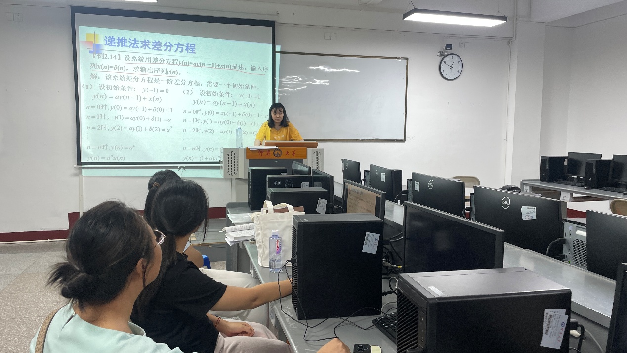 本次参加试讲的老师为苏瑜萍老师,授课内容为《数字信号处理》课程中的《离散傅里叶变换》。试讲过程中,首先回顾时域离散信号的傅里叶变换和Z变换,明确二者作为数字信号处理领域基础数学变换的核心价值,但是两种变换的频率域结果为连续函数,不能被实际的数字系统处理,引出了离散傅里叶变换DFT,在此基础上,介绍了DFT的定义及其物理意义,展现了清晰的教学思路和初步教学设计能力。试讲结束后,员工们围绕教学内容和课堂管理展开点评与讨论,既肯定了新员工在在教学设计上的亮点与进步,也针对一些不足之处提出了优化建议,如增加介绍DFT的实际应用案例,帮助员工直观理解知识点的现实价值,在课堂中增加与员工的互动,增强课堂参与感等。