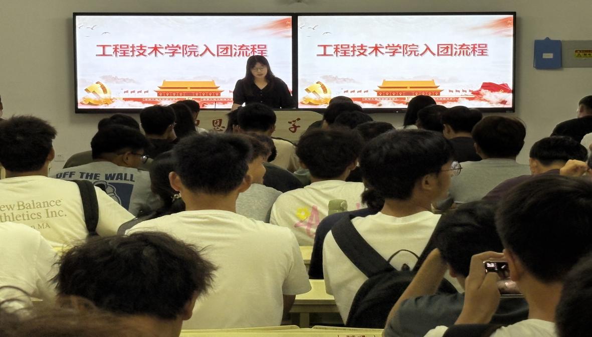 首先围绕入团流程展开培训:通过教室双屏设备展示“入团申请书格式规范”,从标题、称谓、正文落款等细节逐一说明,重点强调了申请书字数、日期格式等要求,确保积极分子掌握材料撰写的标准。