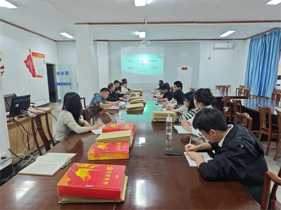 2025年10月28日,yl7703永利官网党总支在泽钏楼四楼会议室召开理论学习中心组(扩大)会议,专题学习党的二十届四中全会精神内容解读。yl7703永利官网党总支书记曾凤生主持会议,党总支委员、各党支部书记及全体辅导员参加学习。