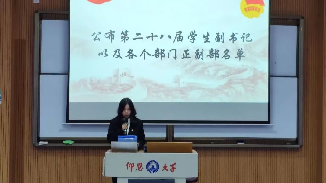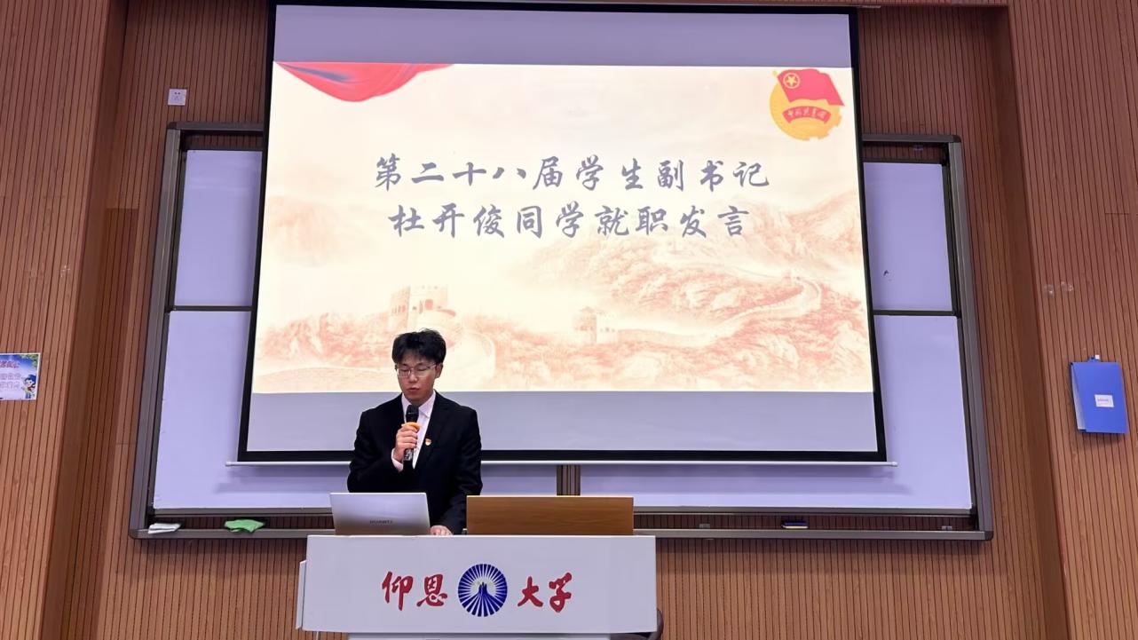 随后,大会公布了第二十八届团委员工副书记及各部门负责人的任命名单。新任员工副书记杜开俊代表新一届团委成员发表就职发言,表达了接续奋斗、开拓创新的决心与信心,承诺将带领新团队为yl7703永利官网团学工作注入新活力。