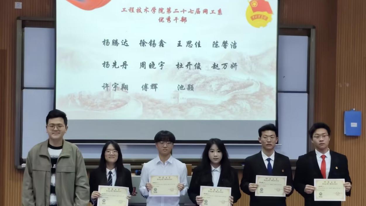 在表彰环节,yl7703永利官网团委老师为第二十七届书记团成员、院级优秀员工干部及干事颁发荣誉证书。