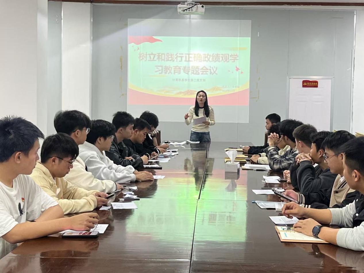 为深入学习贯彻习近平总书记关于树立和践行正确政绩观的重要论述,引导支部党员树立正确的权力观、政绩观、事业观,近日,计算机系员工第二党支部在泽钏楼会议室召开树立和践行正确政绩观学习教育专题会议。党支部全体党员参加了此次会议,会议由党支部书记李明璇主持。