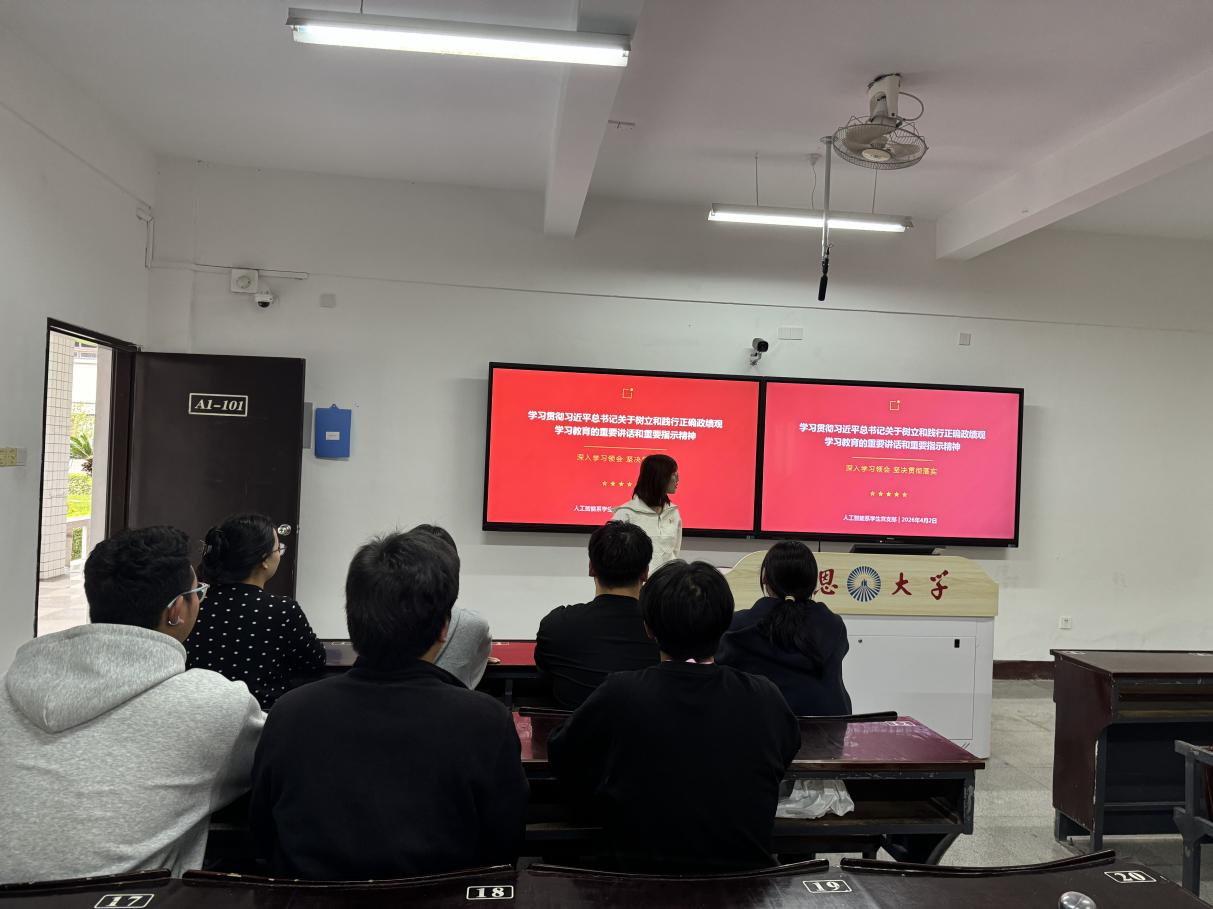 为深入学习贯彻习近平总书记关于树立和践行正确政绩观学习教育的重要讲话和重要指示精神,引导全体员工党员坚定理想信念和强化责任担当,2026年4月2日人工智能系员工党支部在仰A1-101召开专题学习会议。支部书记陈思萍主持会议,组织党员们参加学习。