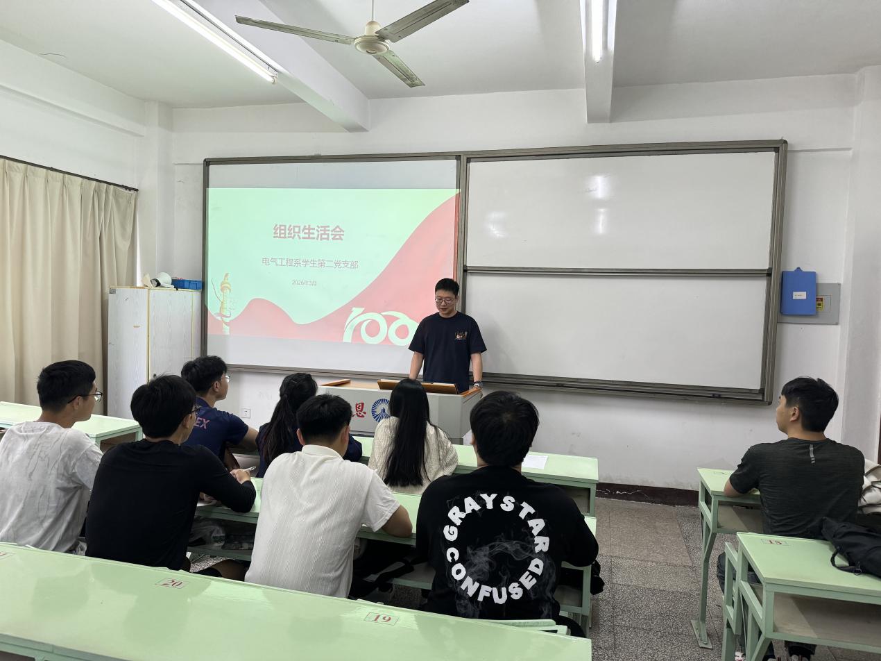 为深入学习贯彻党的二十大精神,进一步加强员工党员的思想政治教育,提升基层党组织的凝聚力和战斗力,2026年3月20日,电气工程系员工第二党支部在吉龙楼103室召开组织生活会。会议由支部书记陈慧敏主持,全体员工党员参会,通过批评与自我批评、民主评议、主题学习等环节,推动党员自我反思、自我提升,筑牢信仰之基。