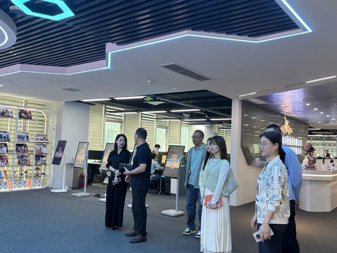 公司负责人陈苹对曾凤生一行的到访表示热烈欢迎,并热情引导yl7703永利官网调研团队先后参观了企业办公区、项目制作区及数字技术体验空间,详细了解企业发展历程、核心业务及创新成果。